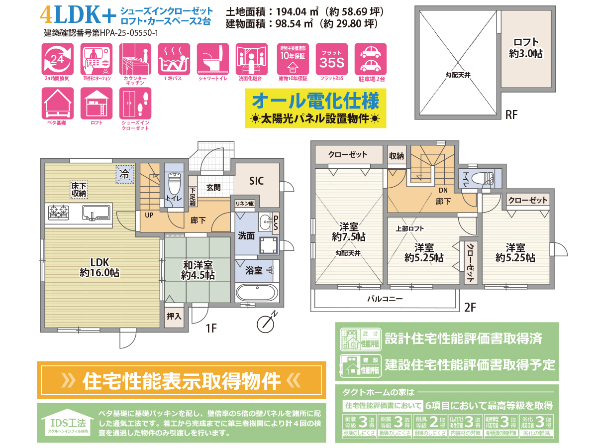 太陽光パネル設置のオール電化住宅♪敷地面積50坪超の広々4LDK+SIC+ロフト!広いお庭にカースペース2台可! 更新日:2025/9/18次更新:2025/9/5 |